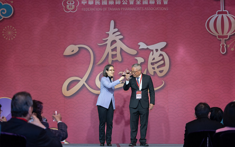 副總統同時表示,今天的春酒晚宴,不僅是歡樂的聚餐,更是藥界同心為共同願景努力的機會。相信有藥師公會全聯會的專業引領、全體藥師的堅持與奉獻,以及政府的積極支持,一定能共同打造更健康、更安全、更健全的臺灣社會與醫療環境。最後,他再次感謝藥師夥伴們在第一線守護臺灣人民的健康,並祝福大家身體健康,萬事如意。