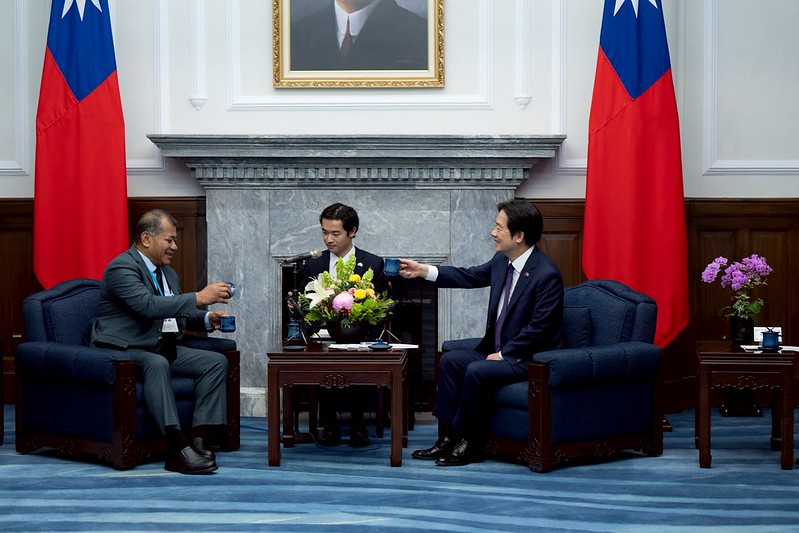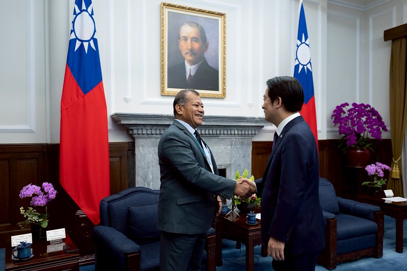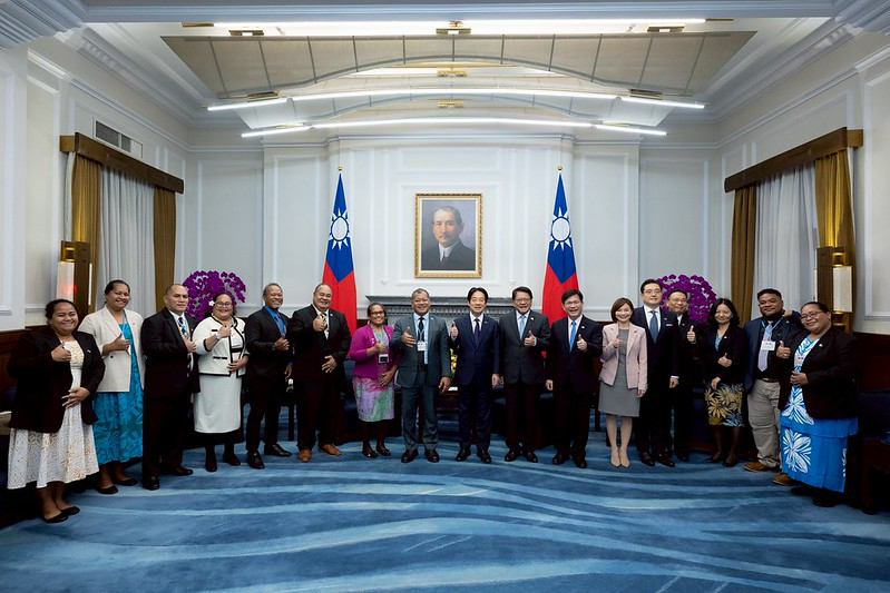 賴清德總統今(15)日下午接見吐瓦魯國副總理兼財政及經濟發展部長倪樂索尼(Panapasi Nelesone)伉儷乙行,感謝吐瓦魯國長期堅定支持臺灣的國際參與,期盼兩國持續在農業、醫療、教育及資通訊科技等領域深化雙邊關係,共同促進太平洋區域的和平繁榮發展。