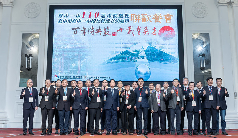 賴清德總統今(27)日下午出席「臺中一中110週年校慶暨臺中市臺中一中校友會成立50週年聯歡晚會」,肯定臺中一中為臺灣培育無數英才。並指出,身為總統,他肩負延續國家生存發展、保護國人生命財產安全及照顧2,300萬人民生活等三項使命,期盼與大家一起合作,為國家、社會、人民貢獻心力,讓國家更強、社會更好、人民更幸福。