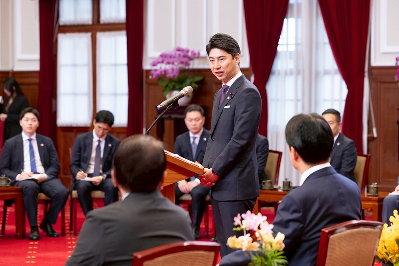 訪團成員包括日本國會眾議員中曾根康隆、平沼正二郎、根本拓、福田Kaoru、參議員神谷政幸及「日本臺灣交流協會」台北事務所代表片山和之等,由外交部長林佳龍、「臺灣日本關係協會」秘書長范振國等陪同,前來總統府晉見總統,總統府秘書長潘孟安、國家安全會議秘書長吳釗燮也在座。