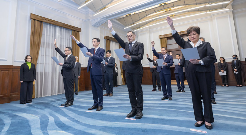 宣誓人員尚包括:駐阿曼大使牟華瑋、外交部政務次長陳明祺、勞動部政務次長黃玲娜、客家委員會副主任委員邱星崴、駐愛爾蘭大使唐殿文、駐汶萊大使蕭勝中、駐科威特大使胡琪斌、駐葡萄牙大使張亞光、國家運輸安全調查委員會副主任委員何慶生、公務人員保障暨培訓委員會專任委員吳明孝、呂理翔。