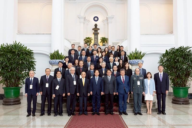 訪賓一行由生策中心董事長王金平率領,衛福部長邱泰源陪同,前來總統府晉見總統,總統府秘書長潘孟安也在座。