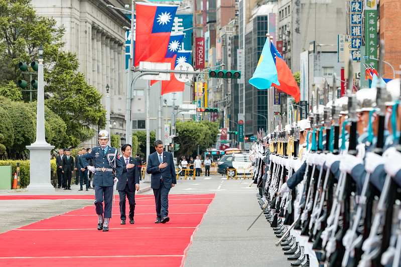 賴清德總統今(20)日下午以隆重軍禮歡迎帛琉共和國總統惠恕仁(Surangel S. Whipps, Jr.)伉儷,並表示,今年兩國建交邁入第26年,互相扶持,克服挑戰,深化各領域合作,希望未來一起努力,為世界做出更多貢獻,也期待透過此次訪問,讓兩國關係更加緊密,共創更豐碩合作成果。