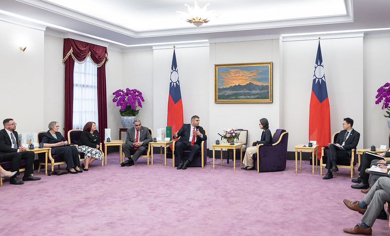 訪賓一行包括英國國會下議員彌蘇拉( Navendu Mishra)、阿里(Tahir Ali)、芭克(Paula Barker)、芙妮絲(Gill Furniss)及奈史密斯(Connor Naismith)等,由外交部次長吳志中及英國在台辦事處代表包瓊郁(Ruth Bradley-Jones)陪同,前來總統府拜會副總統,國家安全會議副秘書長林飛帆也在座。