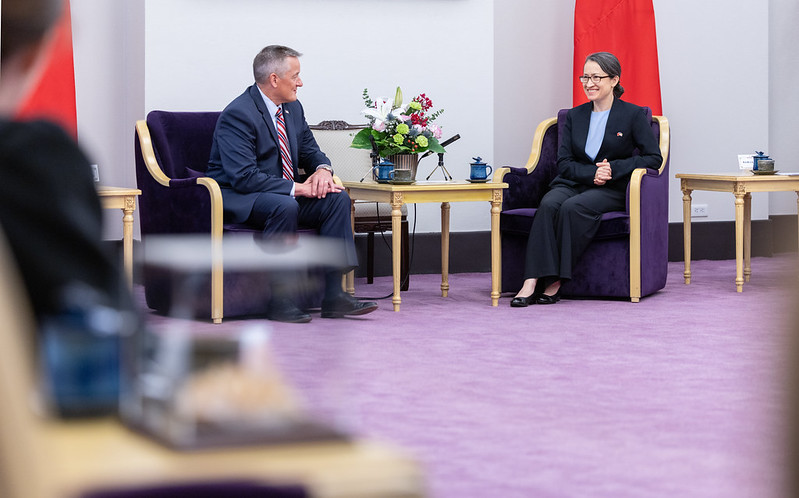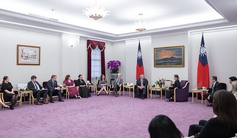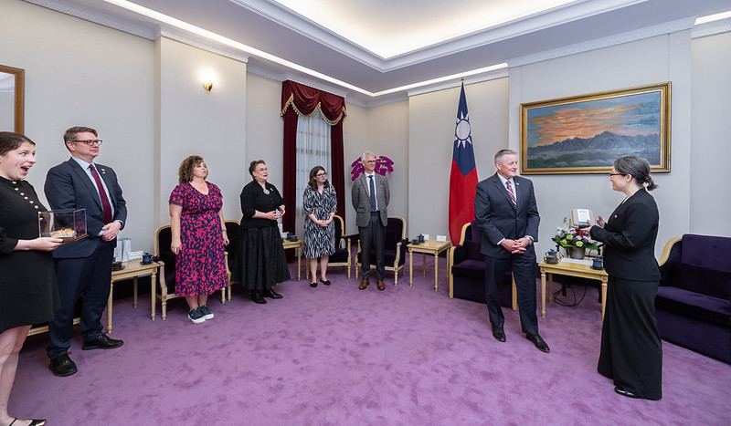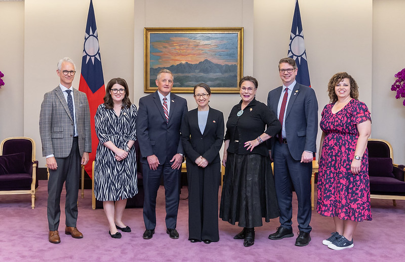 訪賓一行尚包括美國聯邦眾議院「天然資源」委員會眾議員艾爾芙(Sarah Elfreth)、哈格蔓(Harriet Hageman)、馬洛伊(Celeste Maloy)、貝格曲(Nick Begich)等,由外交部次長陳明祺、美國在台協會台北辦事處副處長柯傑民(Jeremy Cornforth)陪同,前來總統府拜會副總統。