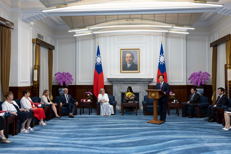 總統表示,這幾年來臺灣和法國在經濟、科技、文化、體育等領域,持續深化合作。上個月在巴黎舉辦「選擇法國」峰會,臺灣和法國企業也宣布將在半導體及衛星等領域展開合作。目前正在法國舉辦的「Viva Tech」新創展,也有許多臺灣廠商參與。無論是官方或民間,臺法之間的交流合作都越來越密切。非常期待藉由友台小組來訪,為臺法關係注入新動能,在經貿、能源及數位安全等領域,打造更緊密夥伴關係。