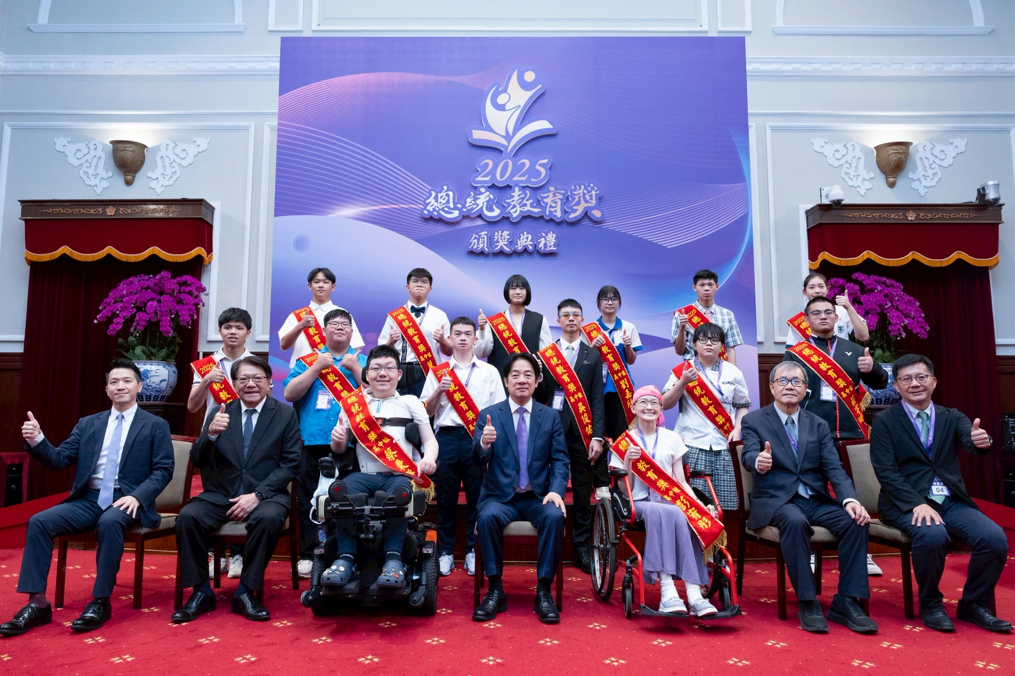 賴清德總統今(4)日下午出席「2025總統教育獎頒獎典禮」,肯定獲獎同學用堅強意志、具體行動克服重重逆境,走出自己的光明大道,也展現令人敬佩的生命力;並盼發揮力量鼓勵、幫助別人,讓臺灣更加堅韌、溫暖、美麗。