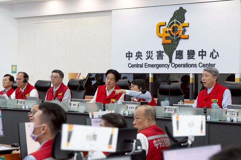 賴清德總統今(6)日下午偕同行政院長卓榮泰前往中央災害應變中心,視察丹娜絲颱風防災應變整備工作。指示中央各部會與地方政府通力合作、審慎因應,務必要踏實落實各項防救災,做好預防工作,也才能預防進一步的災害。