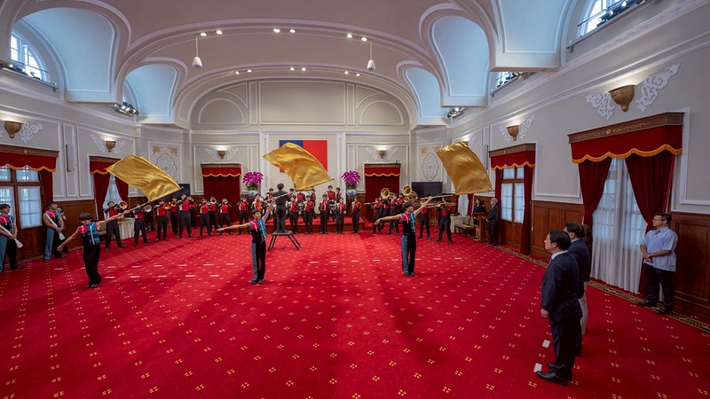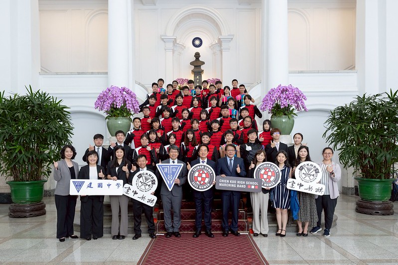 總統提及,前年7月曾到建中樂旗聯隊操練現場,為參加世界樂旗大賽的同學加油打氣。當時同學們在夏天酷熱的陽光下反覆練習、滿身大汗,為了讓演出更加完美而努力堅持,令人印象深刻。辛苦的練習也獲得豐碩的成果,那年建中樂旗聯隊不僅創下隊史最高分的成績,也一舉奪下榮譽金獎亞軍、最佳旗隊冠軍、最佳指揮亞軍等多項殊榮。優秀的表現不只獲得國內外高度肯定,也為臺灣在國際舞台上爭取到極高的榮譽。