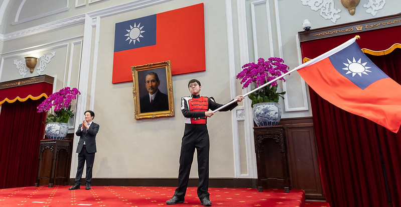 賴清德總統今(8)日上午接見建中樂旗聯隊,為即將赴印尼參與「WAMSB世界樂旗大賽」同學授旗,期許透過國際賽事的技藝交流,展現國民外交的實力。並表示,未來無論面臨多困難的挑戰,期許臺灣年輕人都能發揮堅韌與活力,在世界舞台發光發熱。