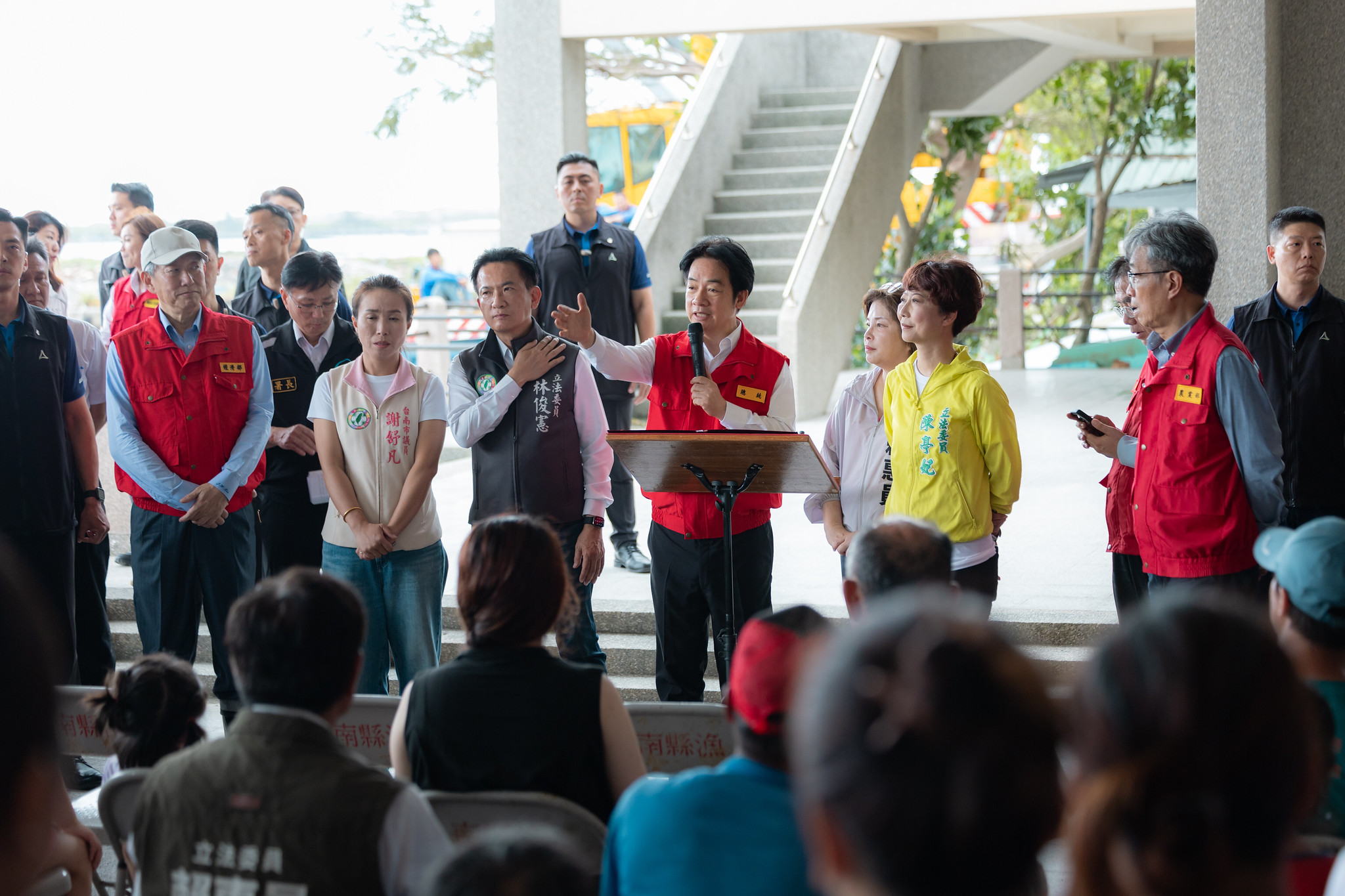 談及公共設施損毀等事項,總統表示,中央的協助絕對義不容辭,而地方政府除了年度預算外,第二預備金也可派上用場。至於漁船筏受損修復及更新等問題,總統再次強調,只要符合災害救助範圍,將「從優、從速、從簡」核定辦理、盡快撥款,幫助度過難關,亦請漁業署與臺南市政府進一步討論漁港保護措施,降低未來颱風的災損情形。