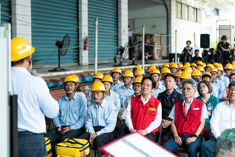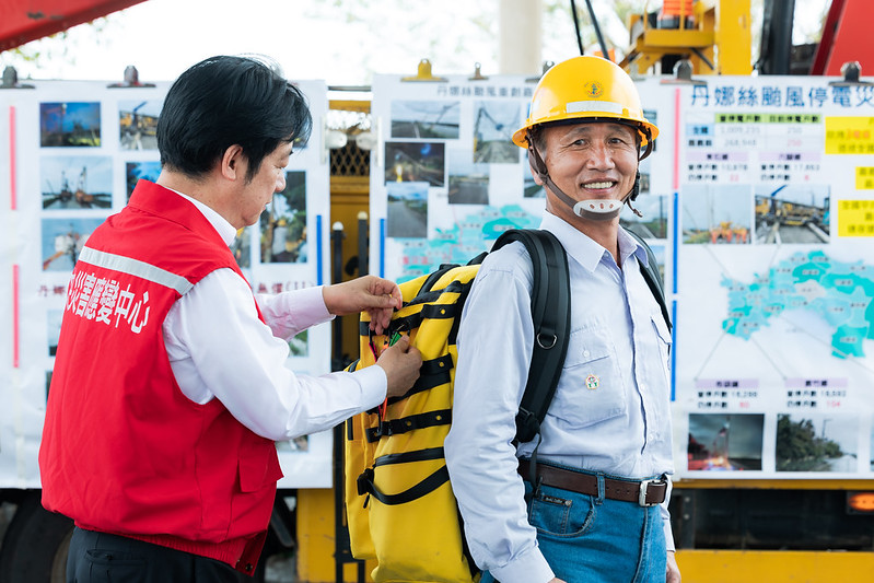 賴清德總統今(18)日分別前往台電公司嘉義松梅巡修課及臺南新營區營業處,慰勉搶修丹娜絲颱風災損復電工程的台電同仁,肯定及感謝每位同仁公而忘私、全心全力恢復民眾用電的使命感,並盼從災害中學習教訓,持續更新台電的基礎設施,避免像此次全面性電桿倒塌的情形再次發生。