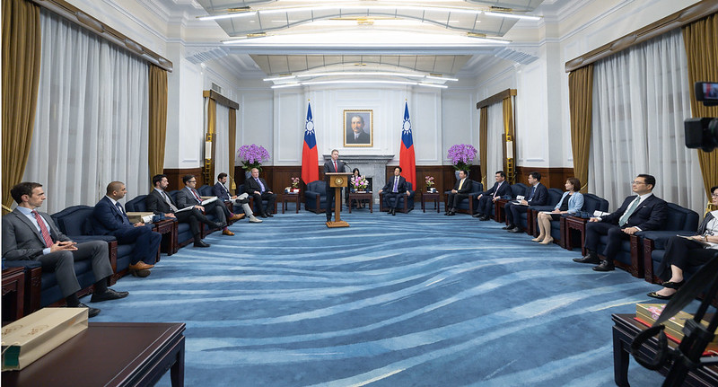 訪賓一行由外交部長林佳龍陪同,前來總統府晉見總統,國家安全會議秘書長吳釗燮、副秘書長林飛帆也在座。