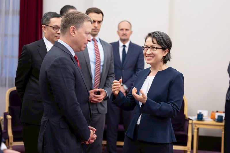 談及臺美在國防工業基礎合作相關議題。副總統說,美國一直是臺灣最重要的安全合作夥伴。多年來,臺灣從美國採購許多非常重要的防衛裝備,但現在的交付有時無法滿足需求,臺灣需要主動承擔責任來強化自身能力,同時也尋求與美國共同生產的機會。臺灣在大量生產與製造方面累積許多實力,這讓我們能與夥伴共同合作並做出貢獻,臺灣在無人機和機器人技術上投注心力,並關注世界各地的衝突地區,研究不對稱戰力如何強化韌性。過去一兩年來,臺灣從零開始建立了國內的無人機供應鏈與提升自身實力,也正發展其他形態的機器人技術。他認為,在這些領域與美國及其他民主夥伴進行安全供應鏈與創新的合作,將有助加速臺灣維持不對稱戰力優勢,以及嚇阻與防衛的能力。
