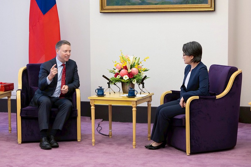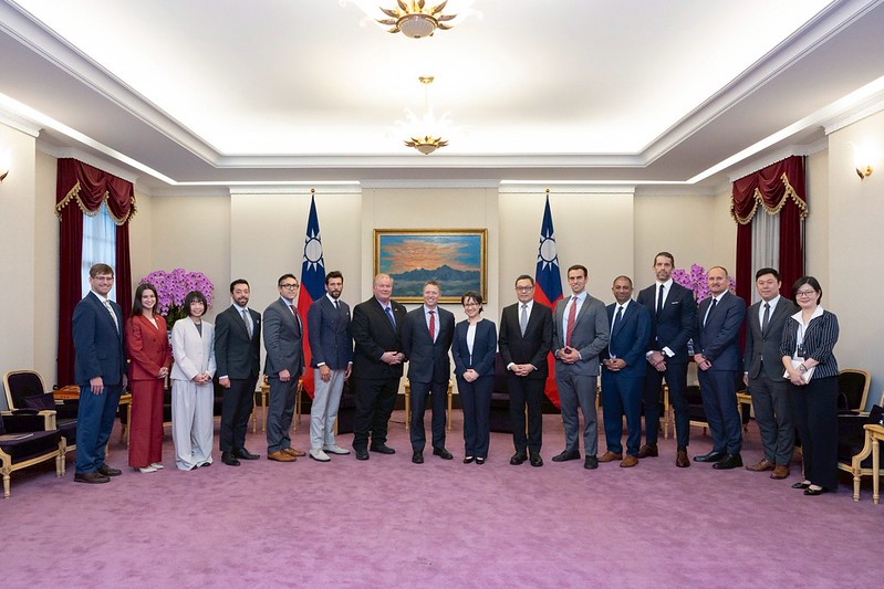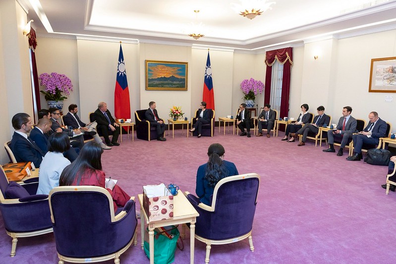 訪團由白宮前副國安顧問博明(Matthew Pottinger)率領,外交部次長陳明祺陪同,前來總統府拜會副總統。