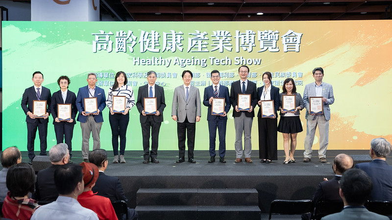 隨後,總統頒發十大高齡友善科技、產品與服務獎項予獲獎機構,並與現場貴賓一同為活動進行揭幕儀式。