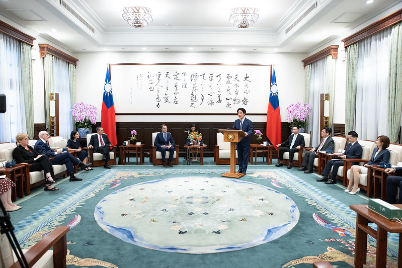 訪賓一行由外交部長林佳龍陪同,前來總統府晉見總統,國家安全會議秘書長吳釗燮、總統府副秘書長何志偉也在座。