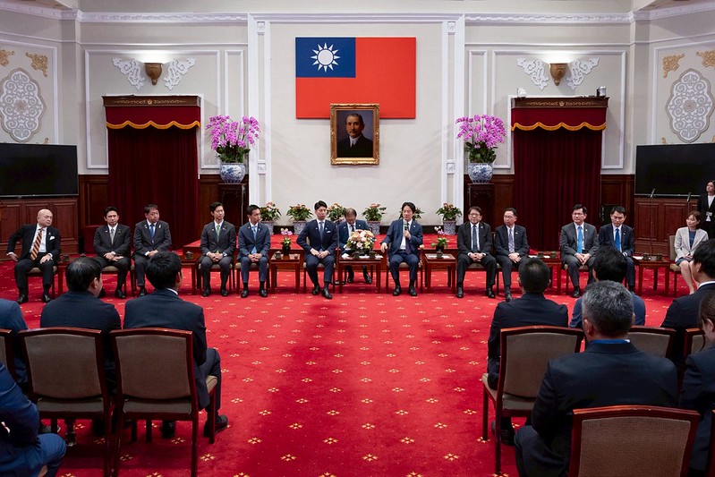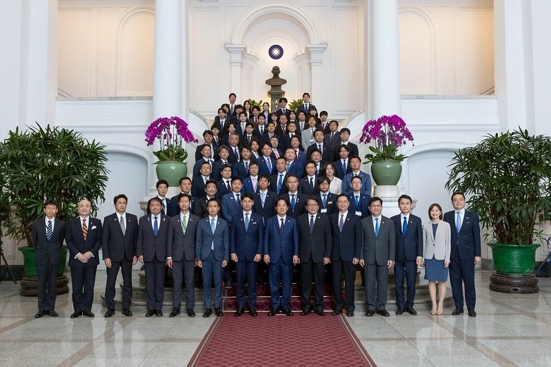 訪團成員尚包括日本國會眾議員平沼正二郎、加藤竜祥、參議員神谷政幸、大阪府議會議員須田旭等,由「日本台灣交流協會」台北事務所代表片山和之、外交部長林佳龍、「臺灣日本關係協會」秘書長張仁久及立法委員陳冠廷陪同,前來總統府晉見總統,總統府秘書長潘孟安、國家安全會議秘書長吳釗燮也在座。