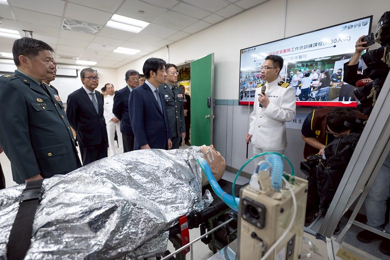 總統接著表示,國防醫學大學與一般醫學大學的不同之處在於具備軍陣醫學及戰傷救護訓練的專業。如果持續精進,對國軍戰力、甚至是全社會防衛韌性將有很大幫助。臺灣應持續精進軍陣醫學,並透過國際合作,借鏡美國或其他國家戰傷救護的經驗。同時,也能利用AI人工智慧、虛擬AR、VR等作為學習工具。
