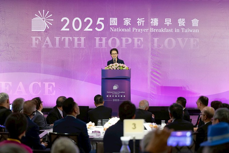 副總統也為國家現今所面臨的外在威脅與內在挑戰祈禱,懇求上帝使這片土地滿有公義,使人民享有自由敬拜的權利,並願世界因臺灣的見證看見上帝的恩典。