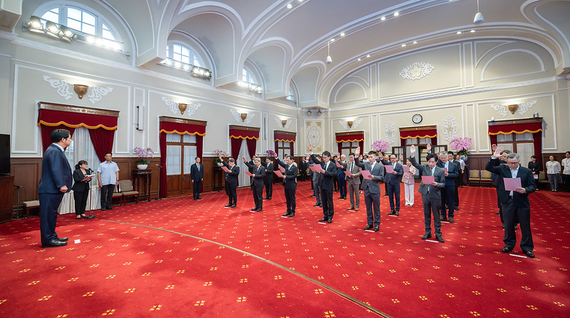 賴清德總統今(23)日上午主持「新任行政院、考試院、總統府、國家安全會議政務人員及駐外大使宣誓典禮」。