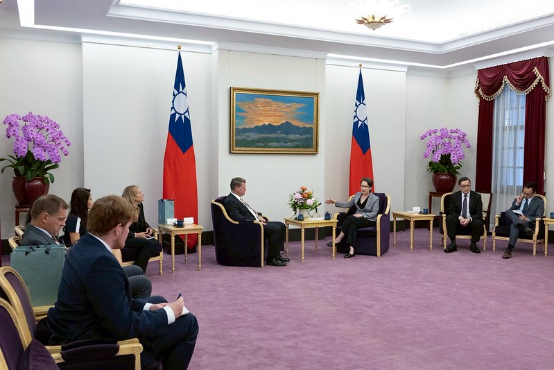 訪團成員尚包括美國外交政策全國委員會亞太安全論壇計畫主任董雲裳(Susan A. Thornton)、史汀生研究中心特聘資深研究員艾江山(Karl Winfrid Eikenberry)及太平洋世紀研究所所長薄瑞光(Raymond F. Burghardt)等,由外交部長林佳龍陪同,前來總統府晉見總統,國家安全會議秘書長吳釗燮也在座。