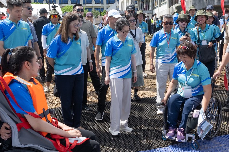 副總統提到,臺灣四面環海,海洋不是遙遠的存在,而是大家的DNA。去年賴總統提出「探索海洋」的主張,希望所有臺灣人都能更了解海洋,發揮海洋國家的優勢,豐富生活。海洋的美好與力量不該是少數人的特權,而是屬於每個人的權利,無論身體狀況如何,都有權利走到沙灘、親近浪花,感受大自然的擁抱。
