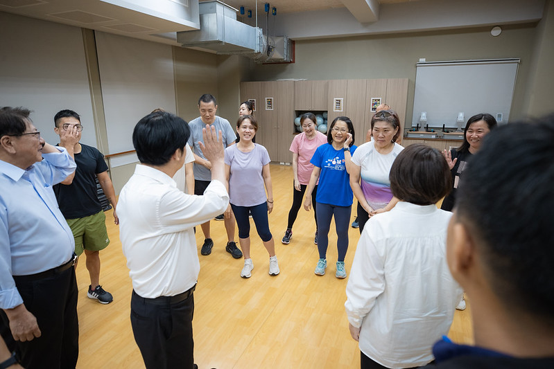 隨後,總統前往親子館及體健室參觀,與家長、小孩及體適能課程學員互動,氣氛和樂融洽。