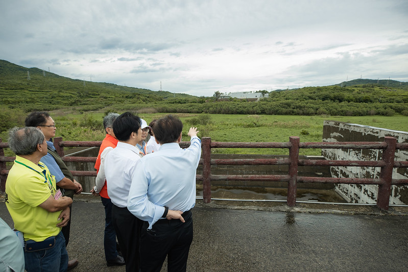 總統抵達後,先後聽取屏東縣政府水利處處長江國豐及經濟部次長賴建信針對恆春東門溪滯洪池及屏東治水情形進行說明。