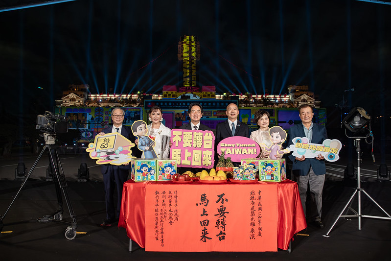 總統說,為了響應金鐘獎60周年,今年光雕展演的主題是「不要轉台,馬上回來」,透過集結臺灣超過80部經典影視作品,帶大家走進時光長廊,回首臺灣金鐘歷史。像他這個世代,很多人小時候最期待的就是放學後回家或到隔壁鄰居家,打開電視收看卡通、新聞、布袋戲或連續劇與綜藝節目,還有全家大小半夜聚在電視機前收看棒球轉播,為臺灣選手高聲吶喊、大聲加油,當時看電視不只為大家帶來歡樂,也是凝聚情感、串聯記憶的重要時刻。