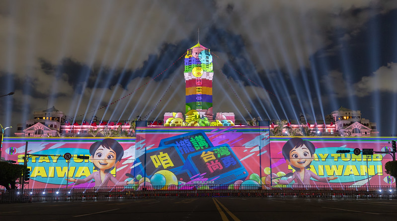 中華民國114年國慶總統府建築光雕展演「不要轉台 馬上回來」今(7)日登場,賴清德總統晚間出席點燈儀式,並邀請國人朋友一起到總統府前欣賞展演,透過超過80部經典影視作品重新回顧臺灣金鐘歷史,共同前來感受臺灣民主社會的多元、自信與開放。