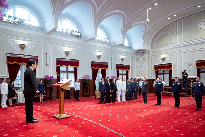 首先,我要向晉升的將軍與寶眷表達最誠摯的祝賀。晉任將官除了是對過往努力的肯定,更是未來新責任、新使命的開始。我期許各位以更高的標準要求自我,持續帶領部隊前進,為國軍、為國家、為民主自由貢獻專業與力量。