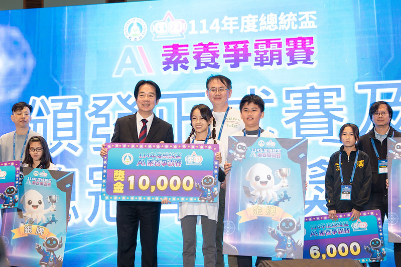 賴清德總統今(28)日下午前往臺南出席「114年度總統盃AI素養爭霸賽頒獎典禮暨閉幕式」,肯定臺灣年輕世代的科技潛力與創造力。並表示,政府正推動「AI新十大建設」與「晶創臺灣方案」,推升臺灣整體科技實力,並推動「一人一機」、生成式AI導入教學等策略,為臺灣帶來系統性的教育升級,落實「創新數位、普惠教育」,縮短城鄉差距。