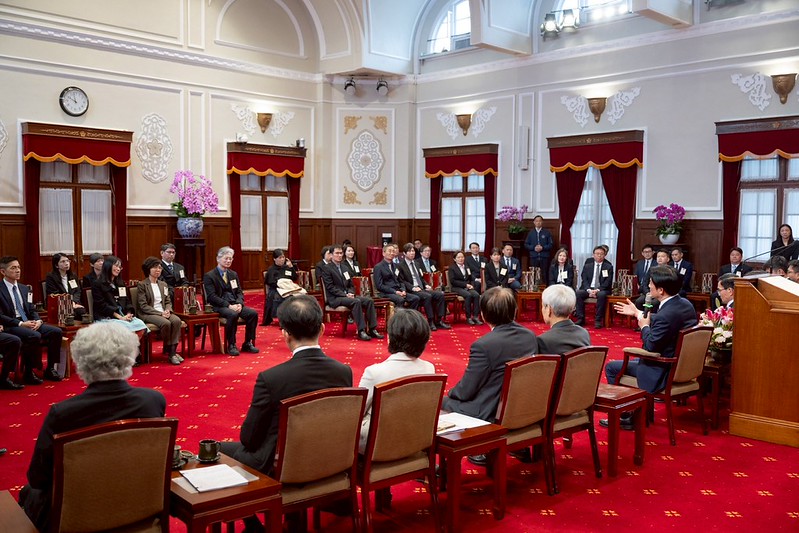 模範公務人員代表一行由考試院長周弘憲、行政院副院長鄭麗君、考試院秘書長劉建忻、銓敘部長施能傑及行政院人事行政總處人事長蘇俊榮陪同,前來總統府晉見總統,總統府秘書長潘孟安也在座。