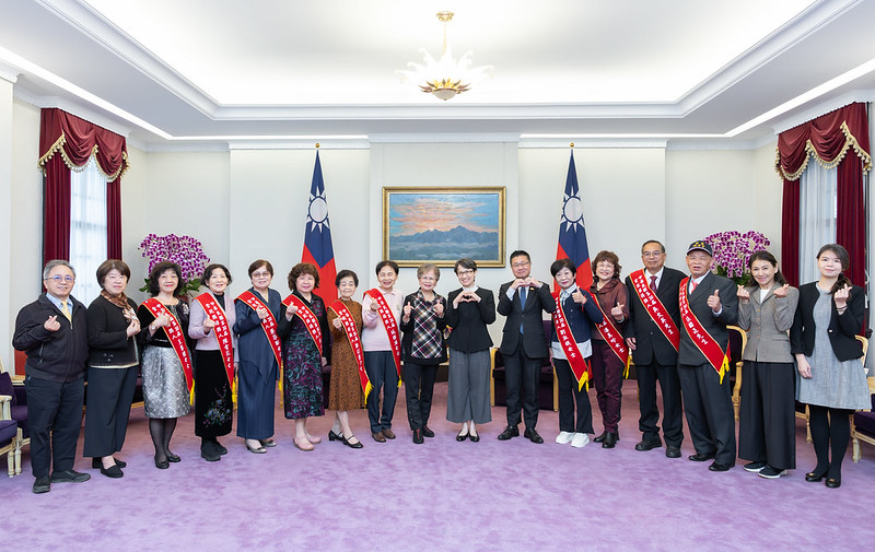 訪賓一行尚包括中華民國志願服務協會理事長藍高玉雲等,由衛生福利部次長呂建德陪同,前來總統府晉見副總統。