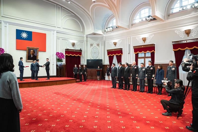 今日的晉任是國家對各位在過往職務上努力付出的肯定。大家對國家、對部隊始終如一的堅持和打拚,凝聚為肩上閃耀的將星;未來各位務必以專業的領導力、務實的作風,擔負起守護國家的使命。