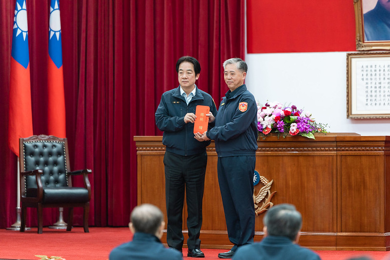 隨後,總統頒發114年維護治安工作獎勵金,慰勉警察同仁們的辛勞。