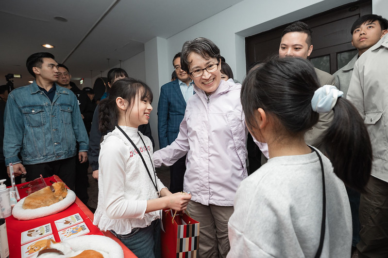 隨後,副總統與現場貴賓及小朋友們一同進行聯歡童樂會開幕儀式,並參觀攤位,與小朋友親切互動,現場氣氛溫馨熱鬧。