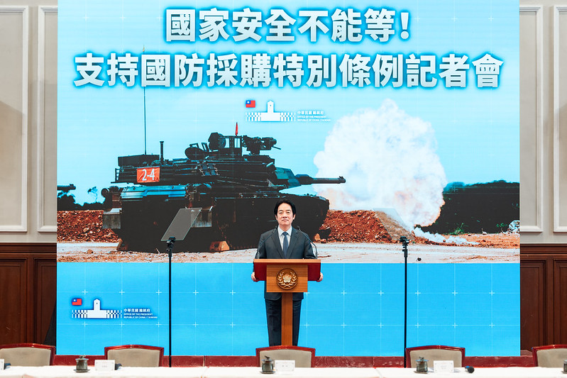 針對行政院提出「國防特別預算條例」草案迄今在立法院未能付委審查,賴清德總統今(11)日上午特別召開「國家安全不能等!支持國防採購特別條例」記者會,向國人說明政府對國軍待遇的重視,以及國防特別預算的重要性。
