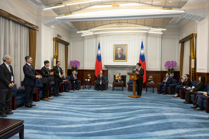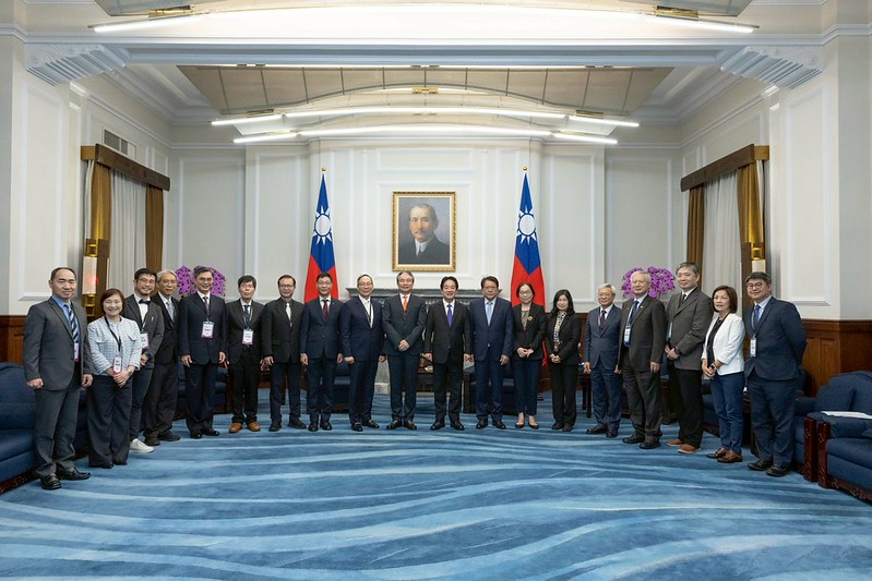訪賓一行尚包括台北市電腦公會監事會召集人蘇亮及資訊月活動委員會主委劉瑞復等,由數發部次長侯宜秀陪同,前來總統府晉見總統,總統府秘書長潘孟安也在座。