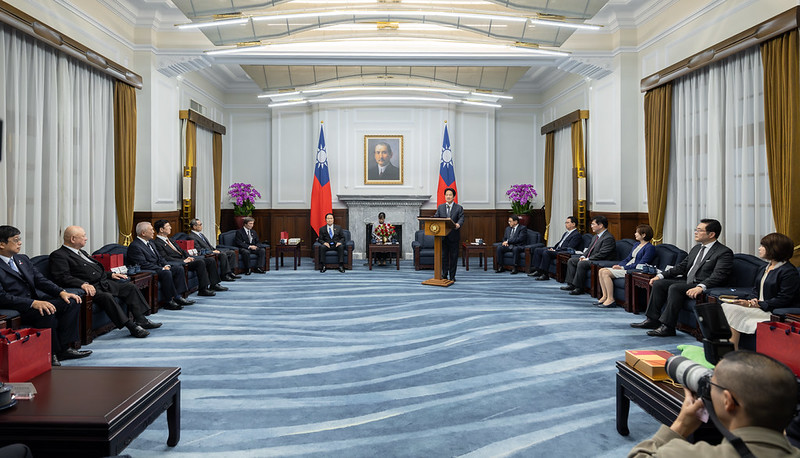 訪賓一行由外交部長林佳龍、臺灣日本關係協會副秘書長林郁慧陪同,前來總統府晉見總統,總統府秘書長潘孟安、國家安全會議秘書長吳釗燮也在座。