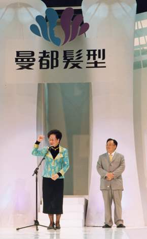 呂副總統秀蓮女士今天下午參加曼都盃美髮創意大賽,除現場觀賞髮型設計師的創作外,也以陽光助學金發起人身分,見證曼都公司捐助善款。