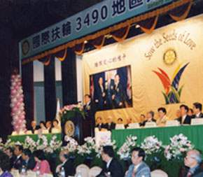 阿扁在一九八七年加入台北北門扶輪社,一直受到來自扶輪社友的鼓勵與照顧,今天來到這裡就像回到大家庭一樣,覺得既溫暖,又親切。這一年的扶輪主題是「播撒愛心的種子」,各位身體力行,發起捐血、捐贈加護級的救護車、慰問蘭陽仁愛之家等活動,為社區帶來溫暖。三四九Ο地區更把愛心的腳步延伸到國際,不但舉辦根除小兒麻痺勸募活動計畫研討會、捐贈盟邦尼加拉瓜二手電腦,更計畫參與援助印度一家百年老醫院的醫療器材更新。阿扁相信,以公益服務為取向的志工精神,絕對是這個世紀的發展趨勢,也將成為跨越國界的主流價值,各位的努力與成就,就是「台灣之子」精神的最佳寫照。