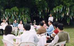 陳總統水扁先生今天下午邀請總統府青年工作團成員及大專社團代表至寓所參加「青春下午茶-阿扁與青年朋友有約」活動,並與青年朋友共同茶敘,分享經驗及心得。