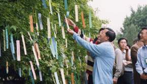 茶敘結束前,總統並與青年朋友們一起觀賞由青年朋友們親手佈置的青春許願樹,總統並親自取下青年們的願望簽和在場的青年朋友共同分享,隨後,總統也和與會的青年朋友們一起在青春許願樹下合影留念。
