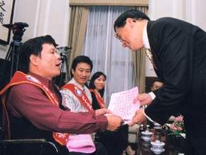 阿扁常說,人生所遭遇的困境,只是一種比較特殊的際遇,沒有必要因此而自我設限,自我矮化。日本著名的企業家松下幸之助先生曾經說過:「路是無限寬廣。」重點是要如何選擇,相信只要有希望和決心,沒有任何困難是不能克服的,而各位的傑出表現與卓越成就,就是最好的例子。
