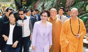 副總統是下午在高雄市國立中山大學以美伊戰爭與朝鮮半島危機之國際情勢談台灣前途為主題,向國際扶輪社三五一○地區第五屆年會的與會人員發表專題演講時,作了以上表示。演講前,副總統並前往佛光山參觀國際花藝特展及相關設施。