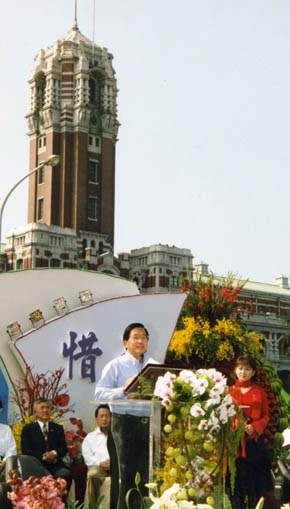 在「休養生息、積極投資」的政策方向下,未來的一年,政府將會不斷的推出具體的政策措施,為強化台灣農業的體質而打拼。其中有幾項重大的建設,阿扁希望藉這個機會向各位農友和鄉親報告,期待大家對政府的用心和努力,多多的給予支持與鼓勵。