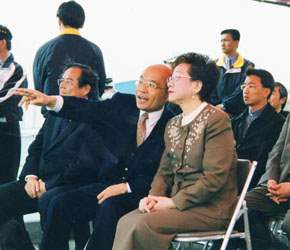 在參觀二重抽水站及引水幹線工程時,副總統於聽取蘇貞昌縣長所作有關二重疏洪區的建設簡報後,也表示,台北縣除了在政治上與台北市關係密切外,在經濟發展上也應與具有優良空運條件的桃園縣結合,以彌補桃園土地之不足,她的目的不在為桃園爭取,而是要讓台灣在建設成為全球運籌中心的過程中立於不敗之地,因此台北縣一方面與台北市合作,一方面也要和桃園航空城結合,她說,這也是她最近以來密集訪視台北縣唯一的企圖心。