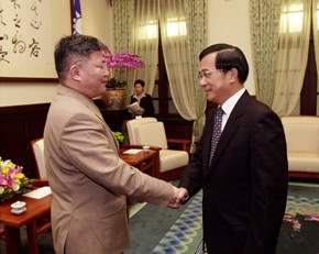 蒙古商工總會會長丹伯瑞,下午由總統府資政辜濓松陪同,前來總統府晉見總統,總統府副秘書長吳釗燮也在座。